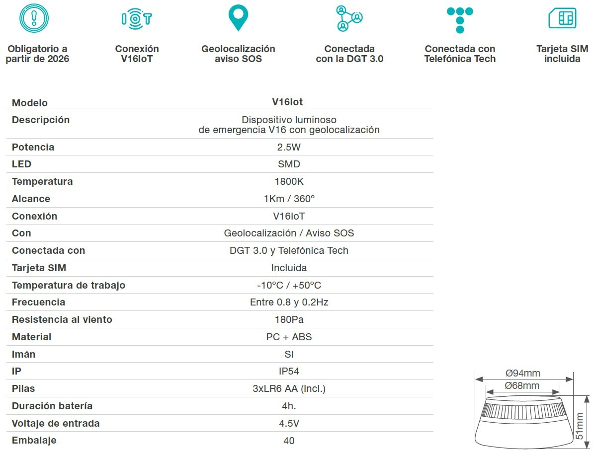 Luz señalización de emergencia para Vehículos V16 con Base Magnético homologado con geolocalización.